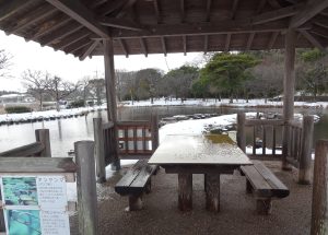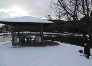 1月22日、浜遊自然館周辺は昨日から降り続いた雪で白一色の世界でした。