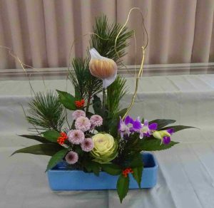 玄関やお部屋を華やかに彩る、素敵なお正月用の花を生けます。