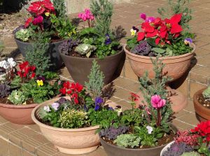 朝からとても良い天気で、外で寄せ植えをしました。