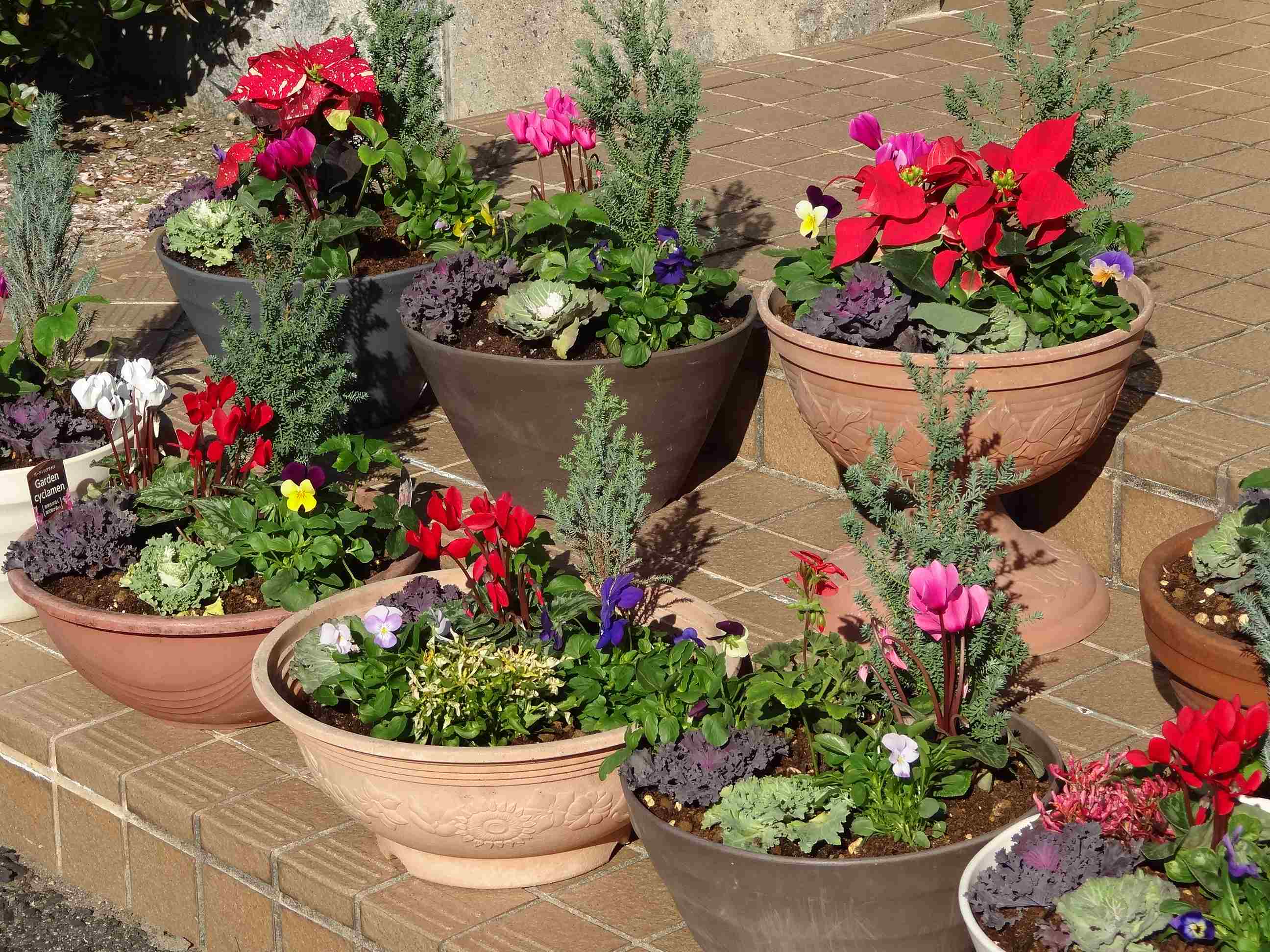 寄せ植えはどれも、とても美しい仕上がりで、寒くなる季節の玄関やお部屋が明るくなりそうですね。