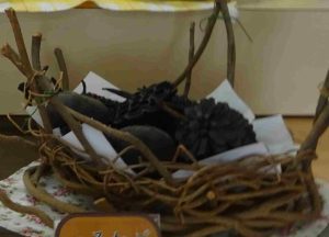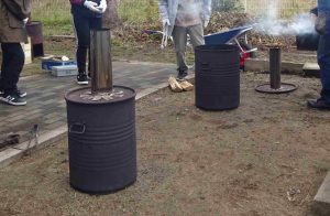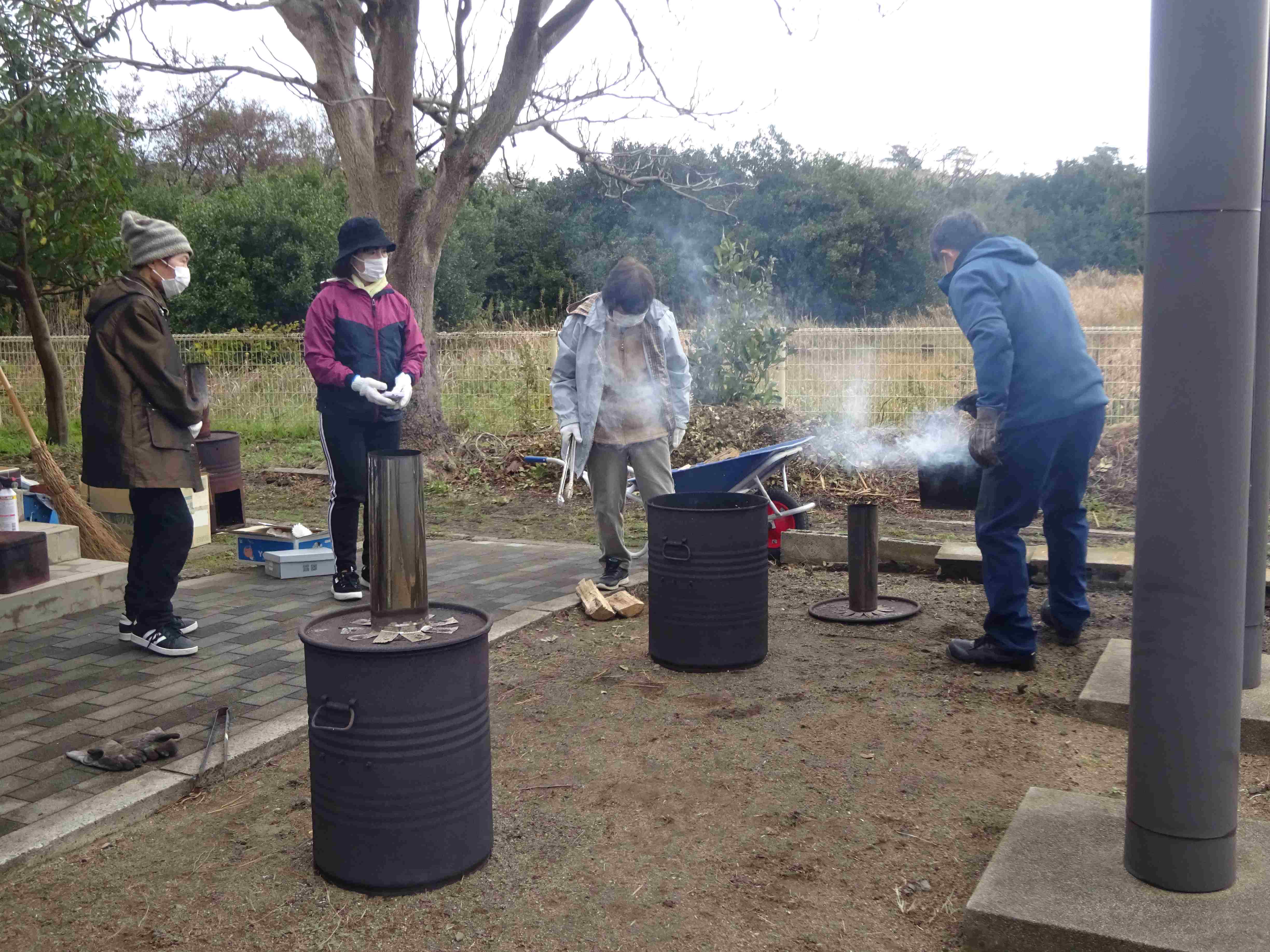 椿の実や松かさ等で、脱臭調湿効果がある炭の置物を作る講座です。