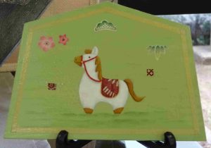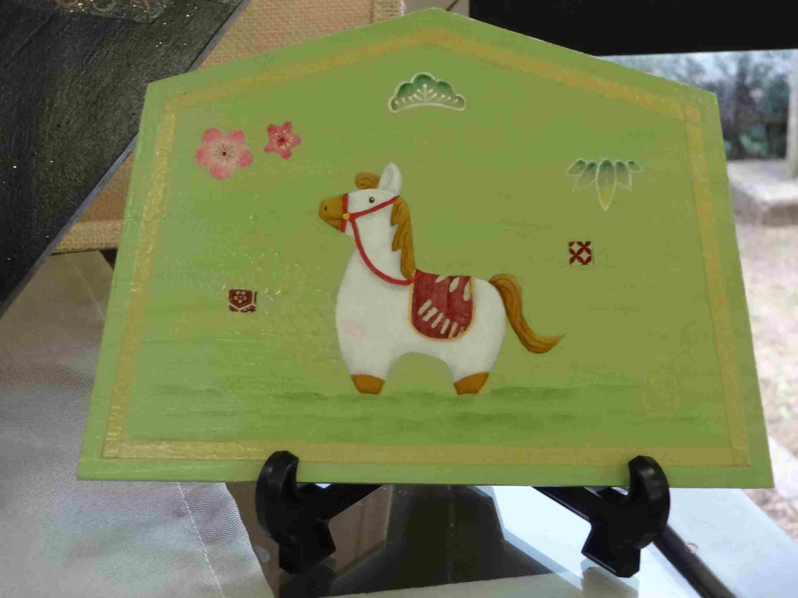 12月7日(日)に【干支の絵馬づくり講座】があり、絵馬の形の白木に来年の干支、馬の絵をペイントしました。