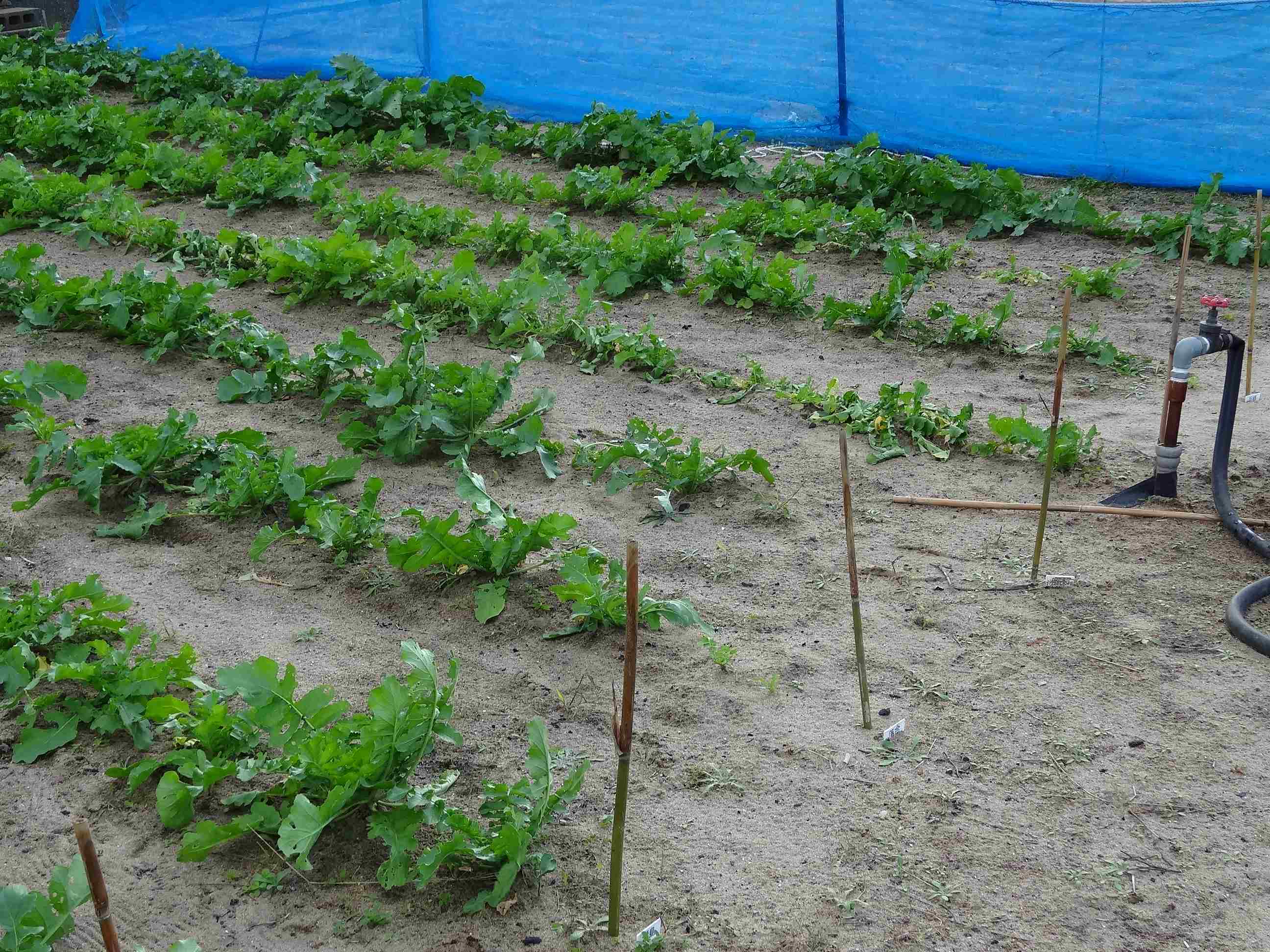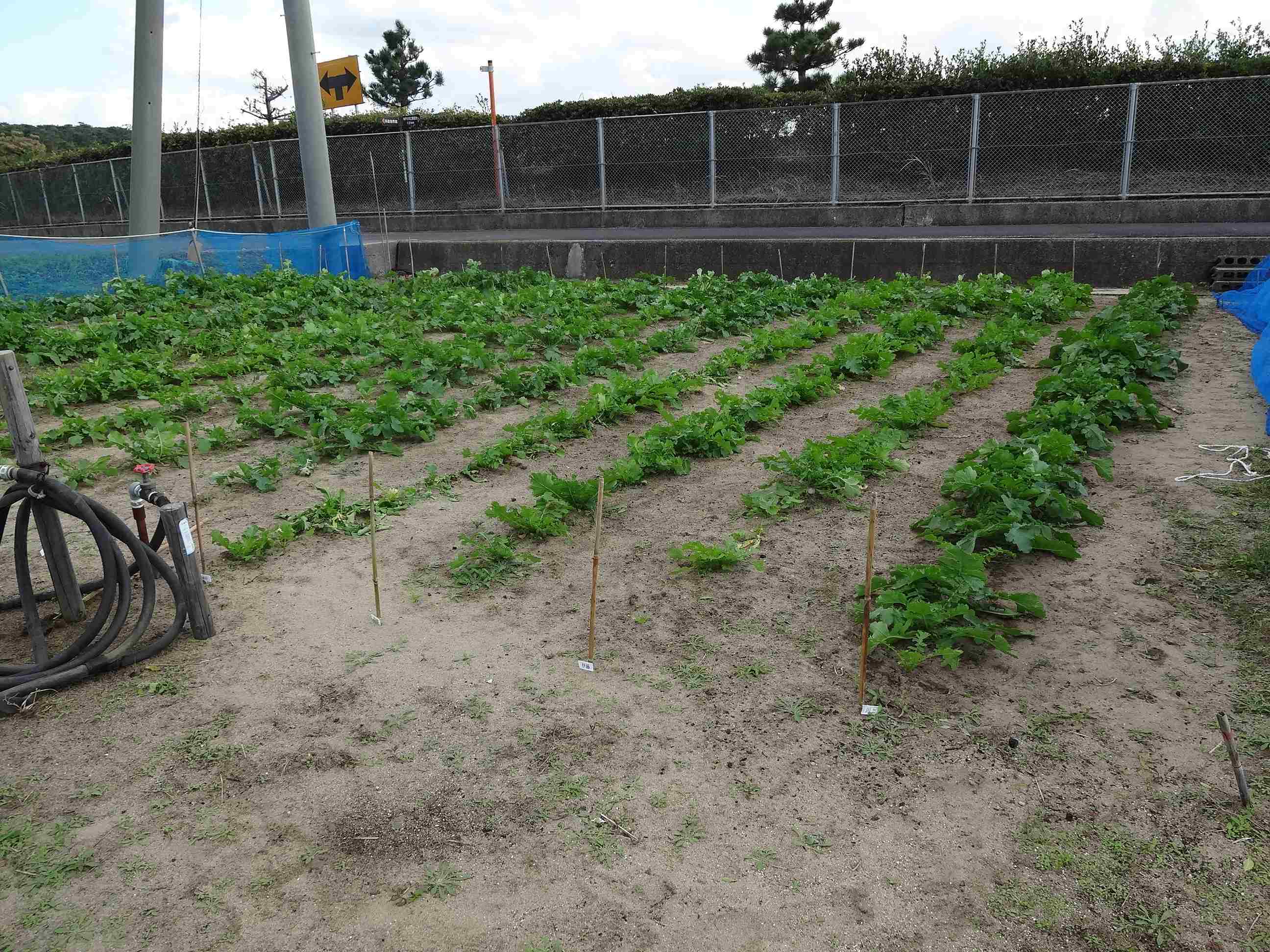 畑の様子を見ると、葉の大きさにばらつきがあるようです。